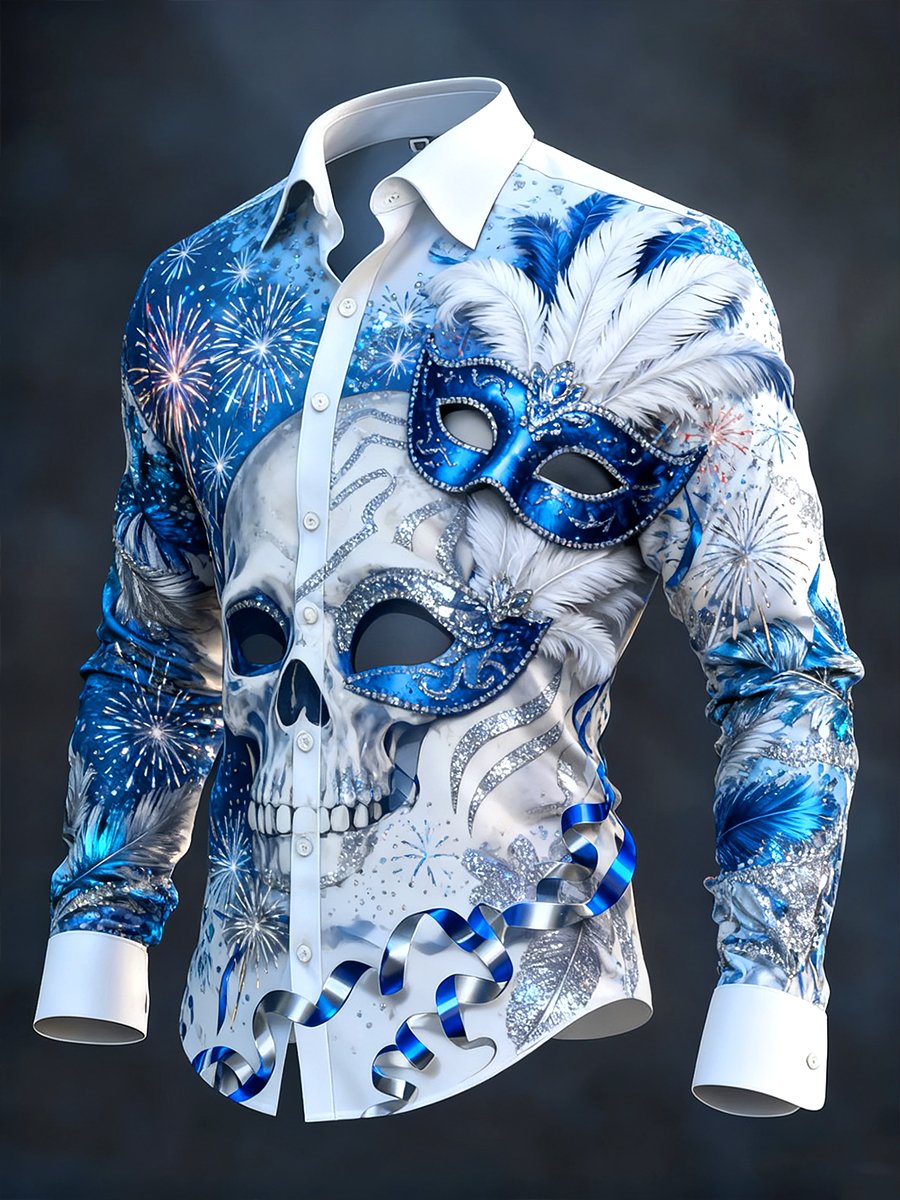 Men's Retro Carnival Skull Long-Sleeve Shirt