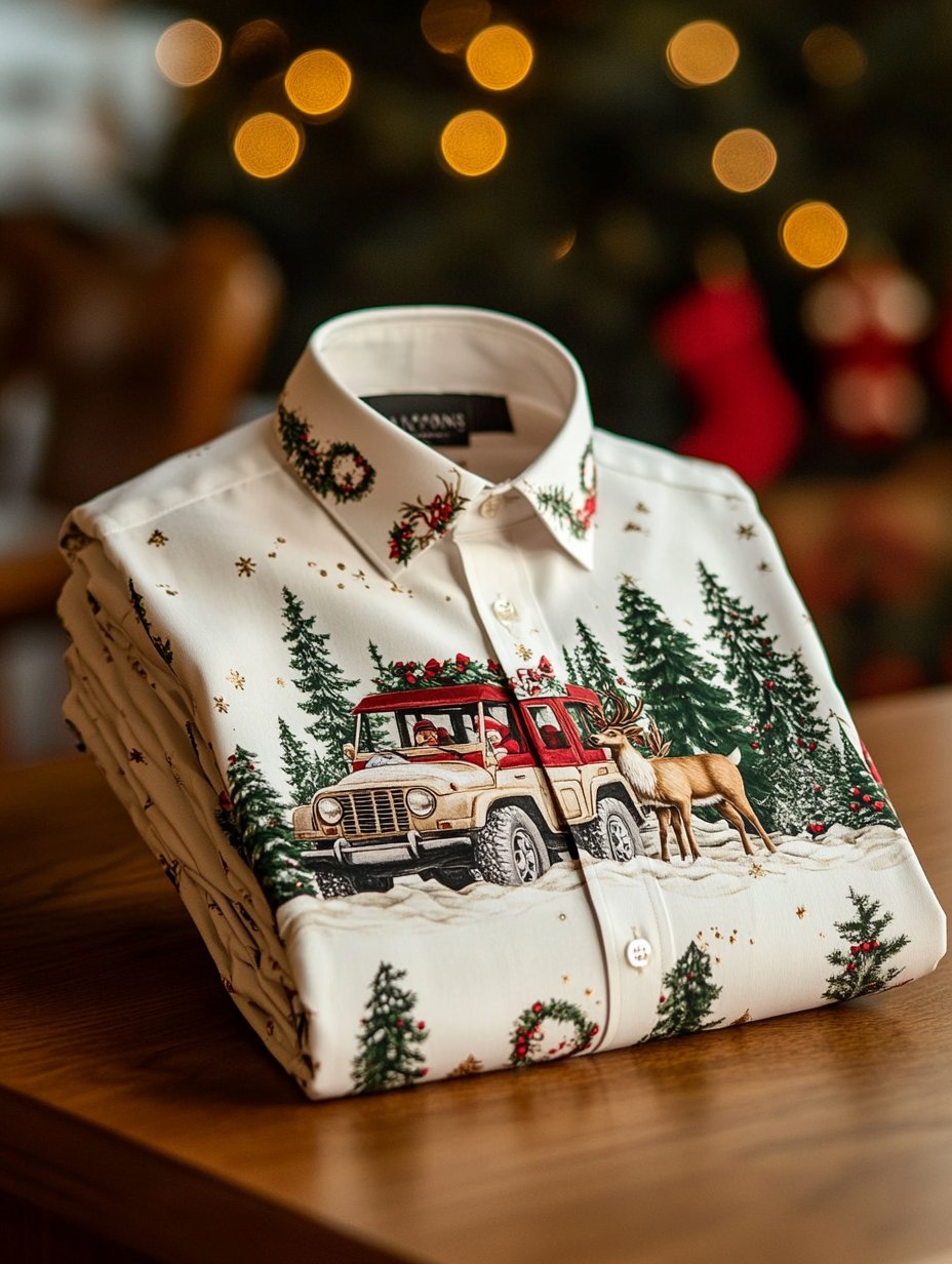 Men's long-sleeved shirt with Jeep Christmas print, wishing everyone a Merry Christmas.