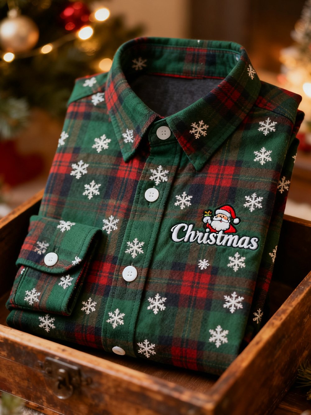 Men's Retro Christmas Plaid Pattern Long-Sleeved Shirt