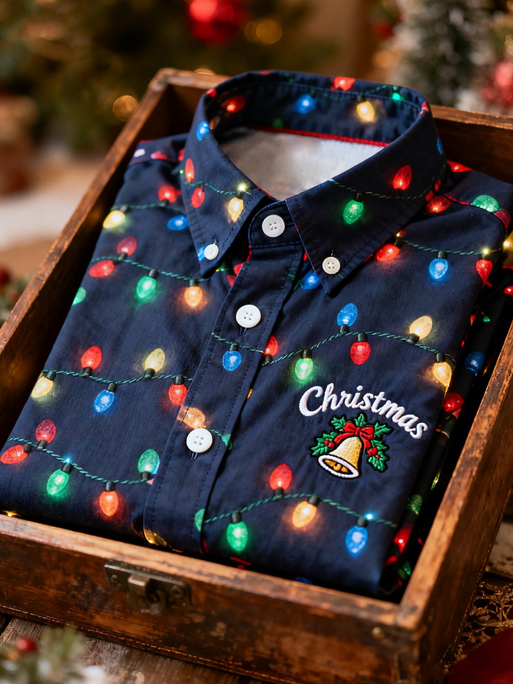 Men's Retro Christmas Lights Party Print Long-Sleeve Shirt