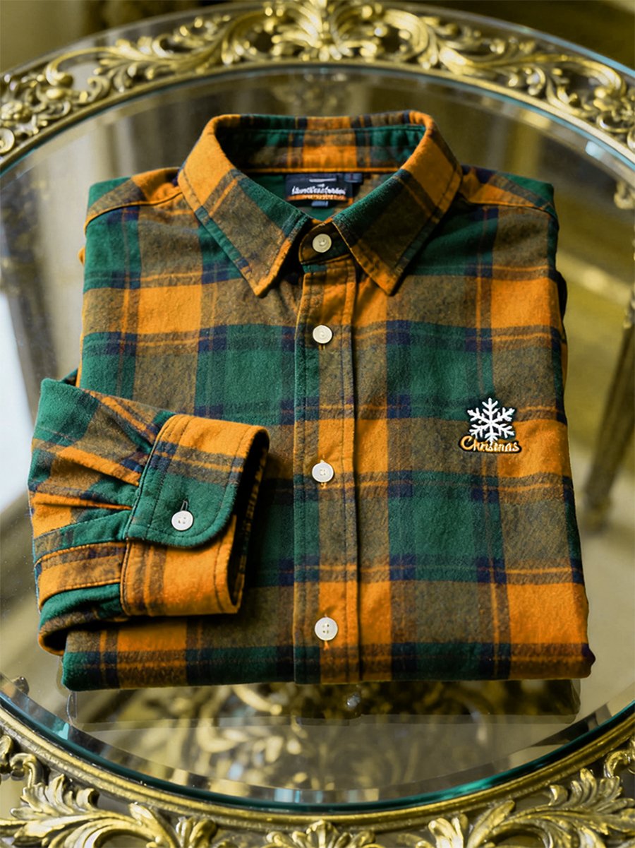 Men's Christmas Plaid Long Sleeve Shirt