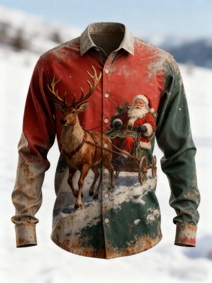 Men's Vintage Christmas Art Long Sleeve Shirt
