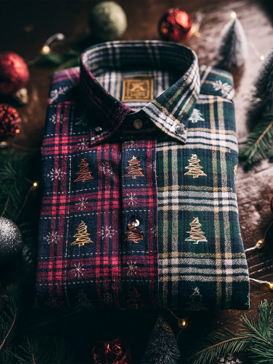 Men's Christmas Plaid Art Long Sleeve Shirt