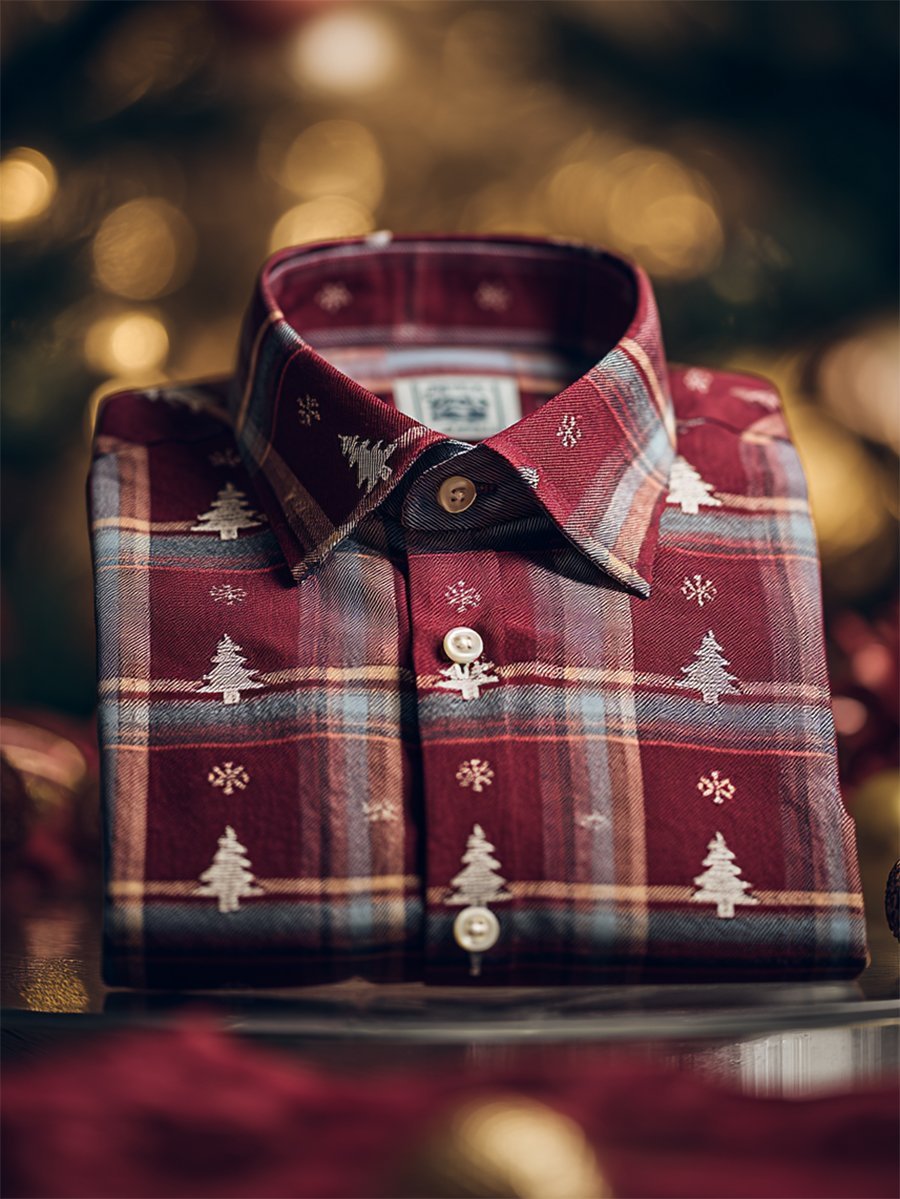 Men's Christmas Plaid Art Long Sleeve Shirt