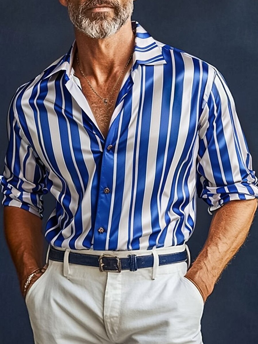 Men's Luxury Striped Long-Sleeve Shirt