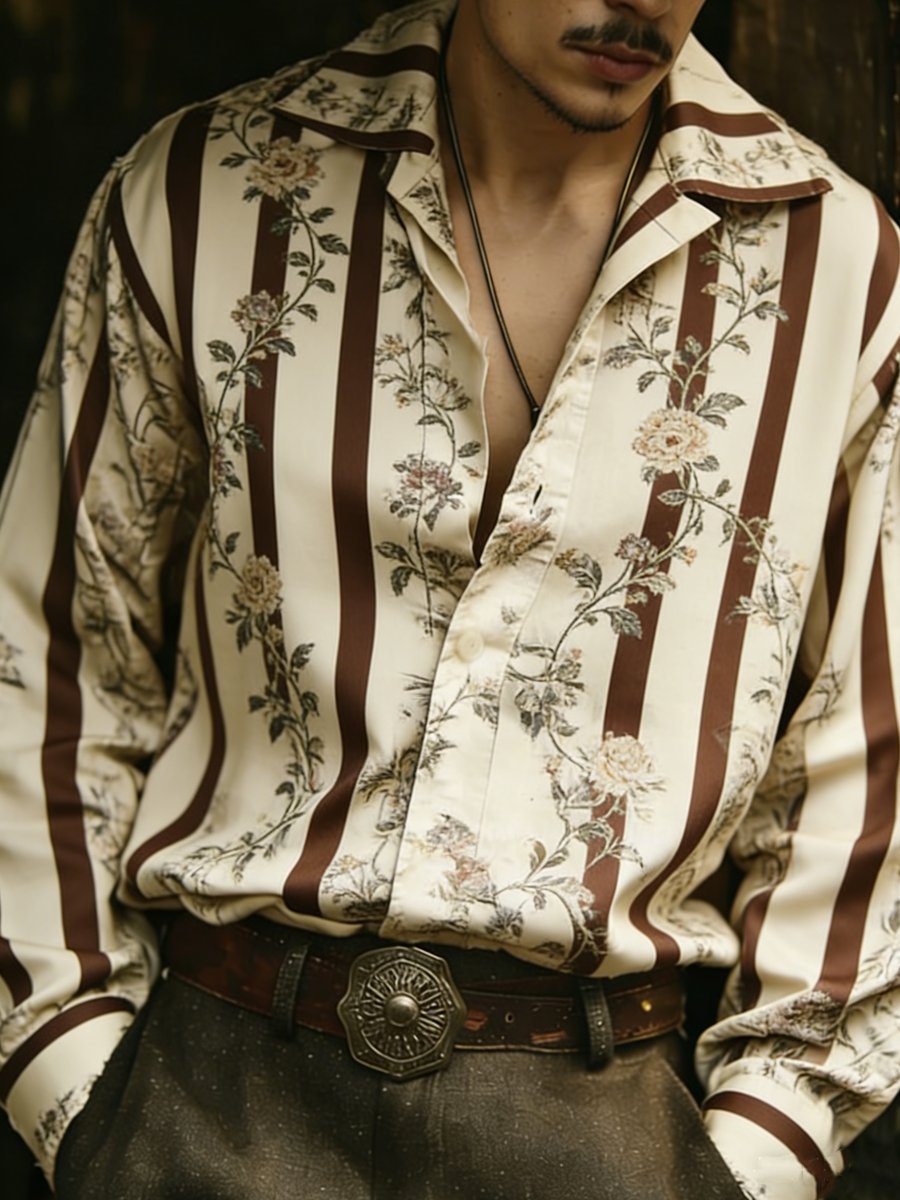 Men's Luxury Floral Print Long-Sleeve Shirt