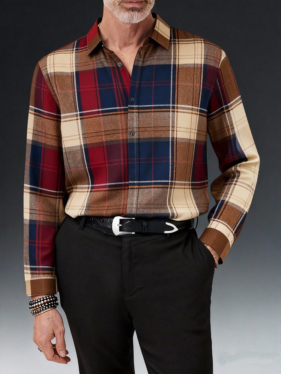 Men's Artistic Plaid Print Long-Sleeve Shirt
