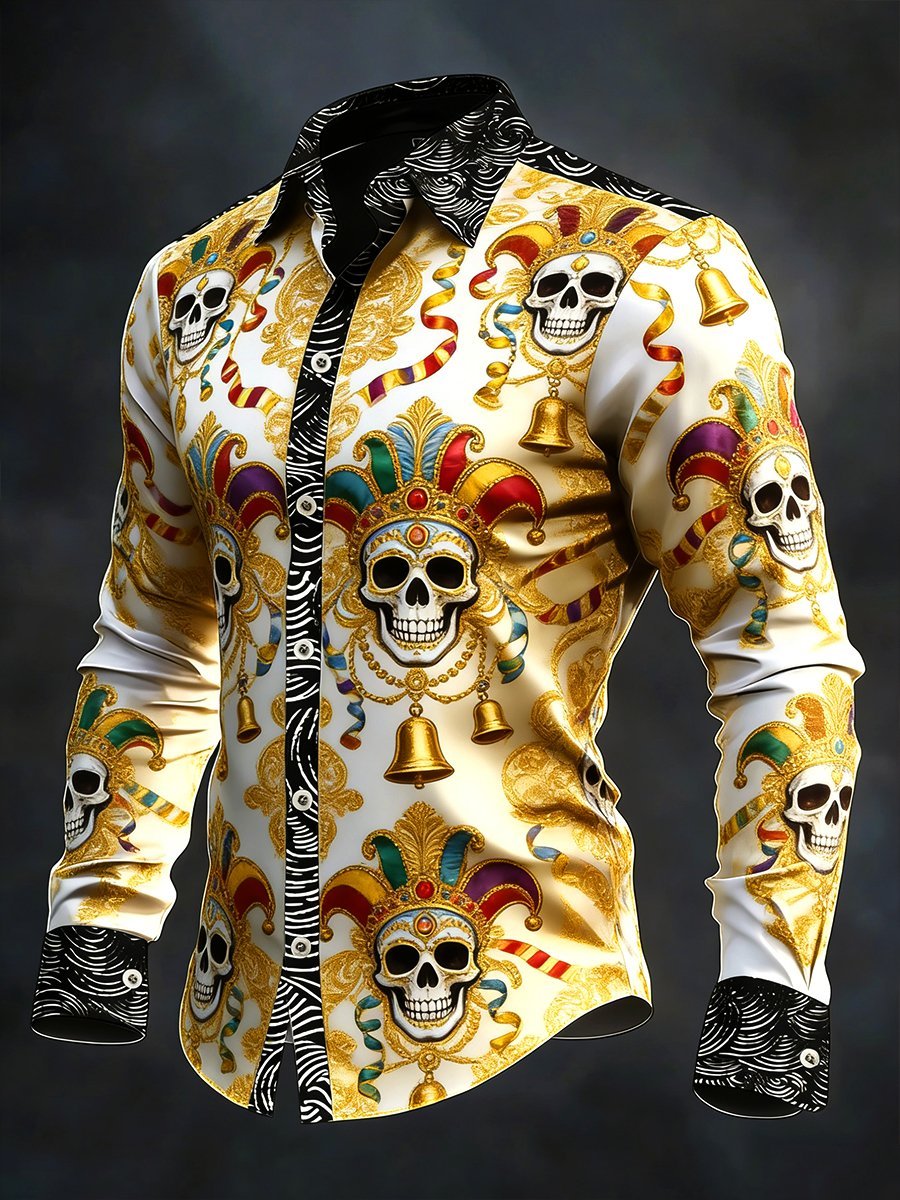 Men's Retro Carnival Skull Long-Sleeve Shirt