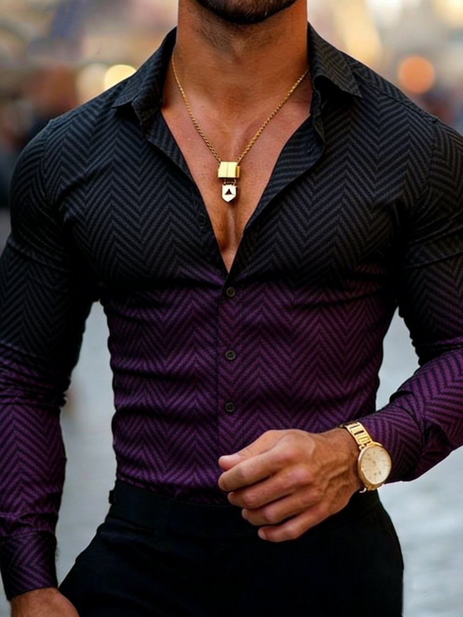 Men's Luxury Business Printed Long-Sleeve Shirt