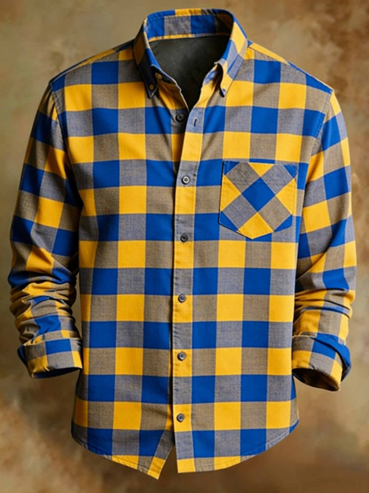 Men's Retro Abstract Art Print Plaid Pattern Business Style Shirt