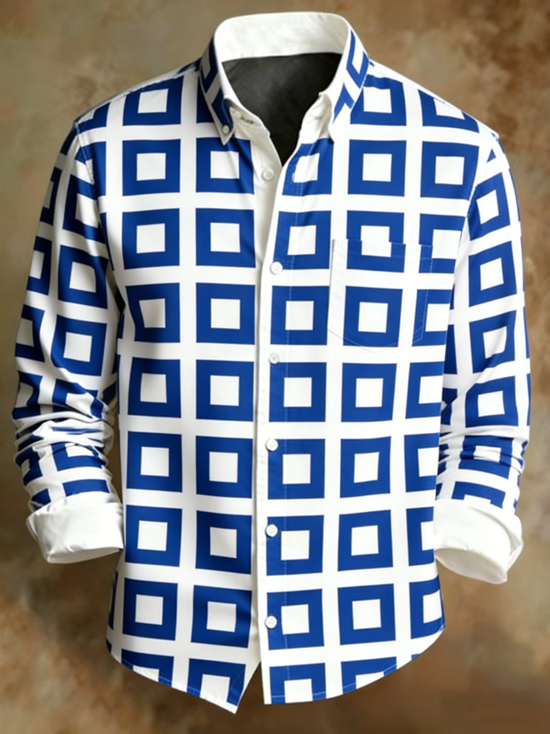 Men's Retro Abstract Art Print Plaid Pattern Business Style Shirt