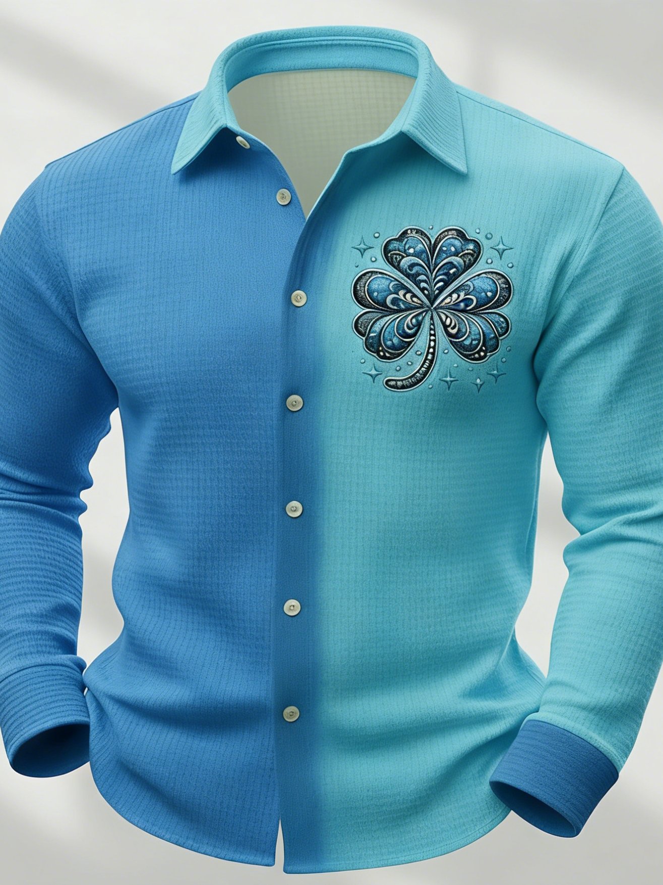 St. Patrick's Day Men's Shamrock Gradient Color Shirt Waffle Shirt Casual Shirt Long Sleeve