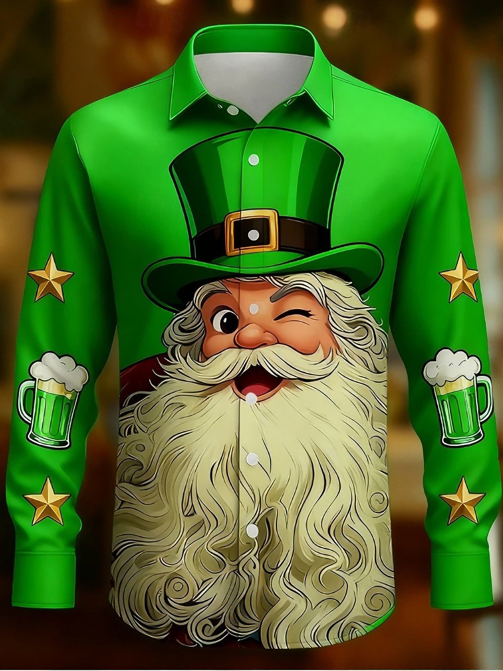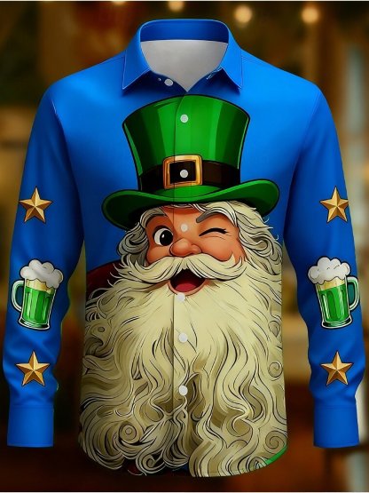 St. Patrick's Day Men's Clover Saint Patrick Green Beer Shirt Button Up Shirt Long Sleeve