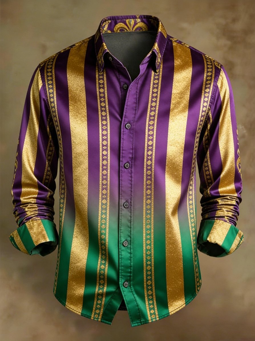 Men's Retro Casual Carnival Pattern Long-Sleeved Shirt
