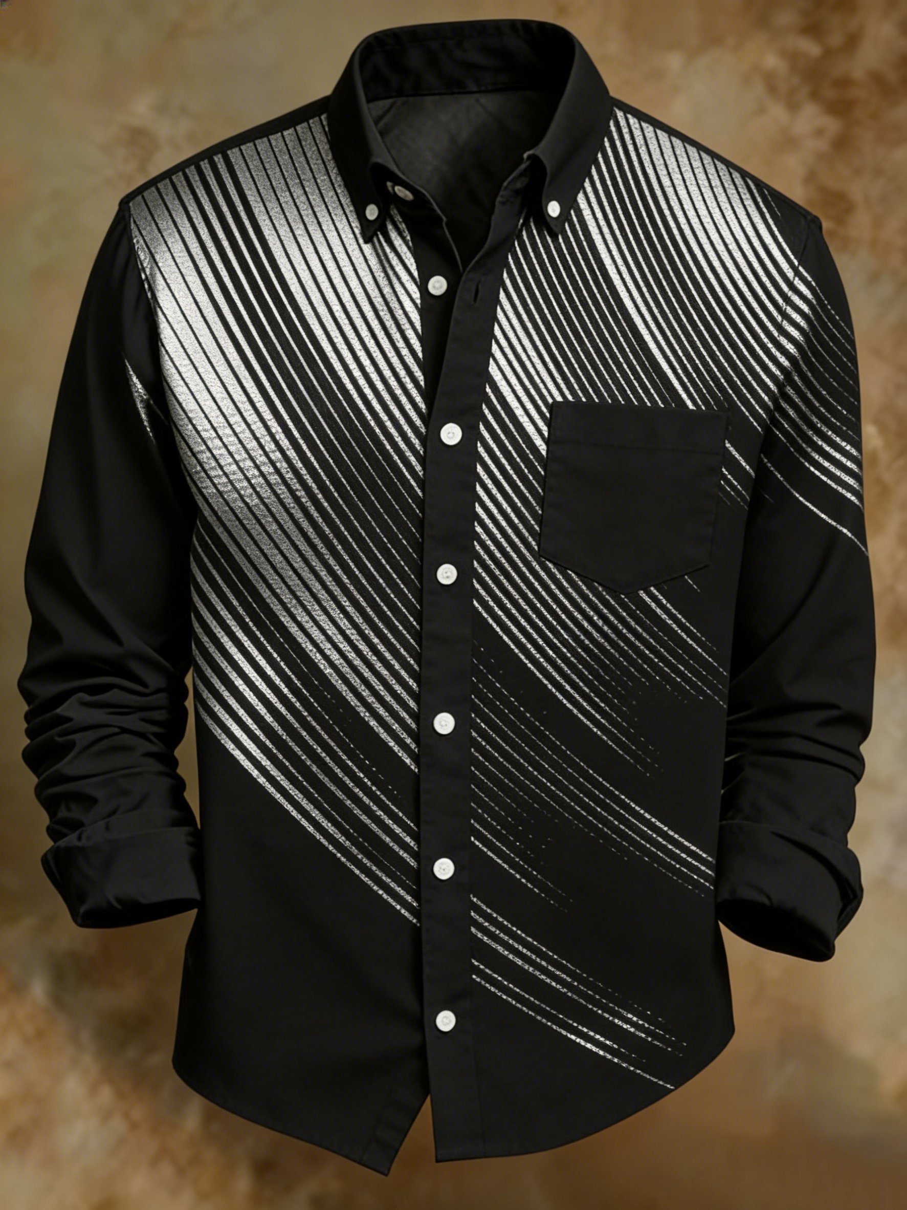 Men's Geometric Abstract Art Black Business Shirt