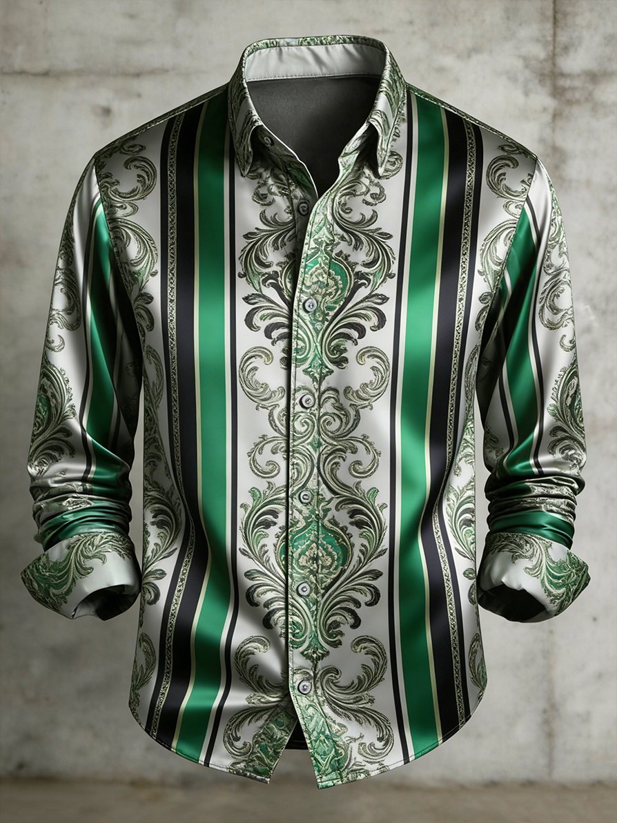Men's Retro Business Color Block Striped Pattern Long-Sleeve Shirt
