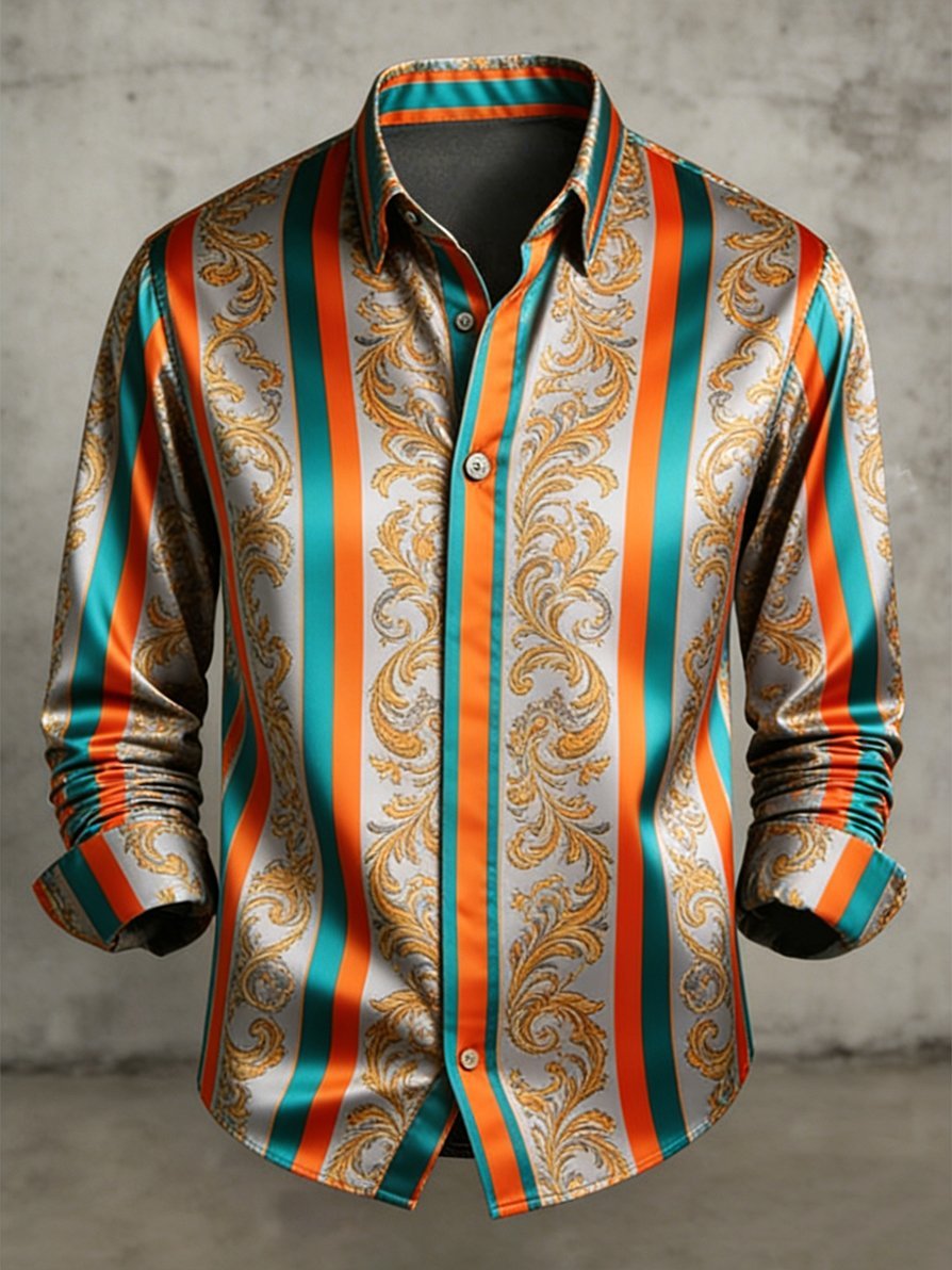 Men's Retro Business Color Block Striped Pattern Long-Sleeve Shirt