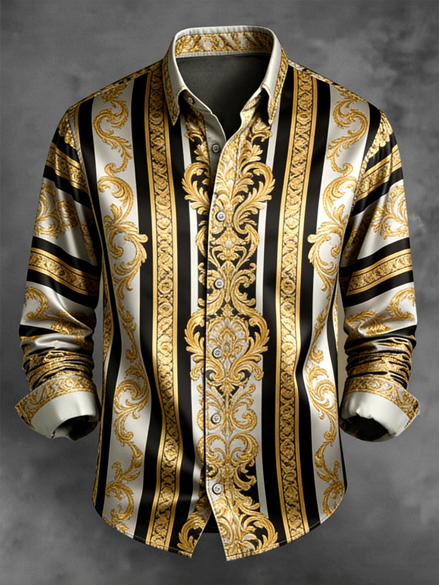 Men's Retro Business Color Block Striped Pattern Long-Sleeve Shirt
