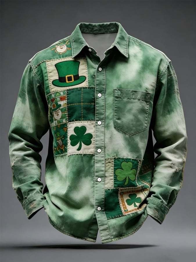 Men's St. Patrick's Day Printed Long-Sleeve Pocket Shirt