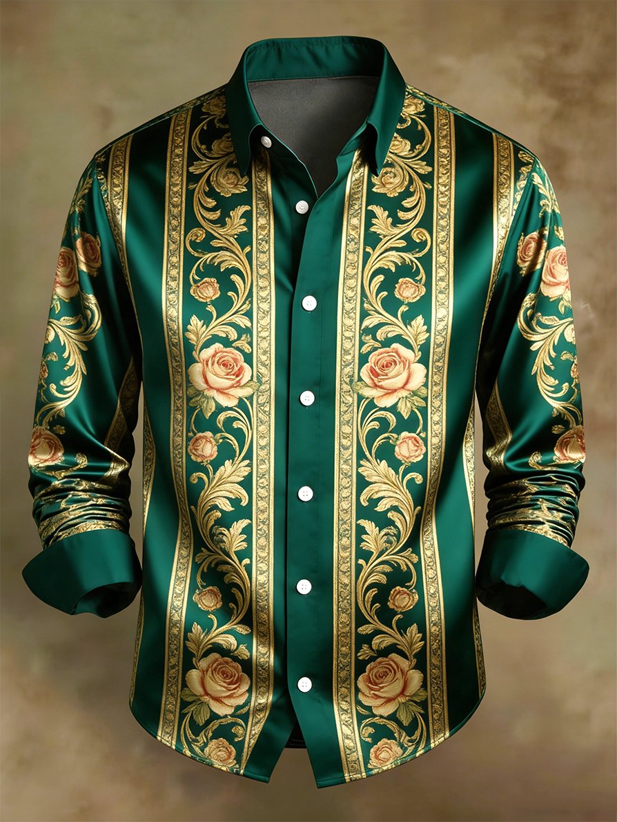 Men's Retro Business Color Block Striped Pattern Long-Sleeve Shirt