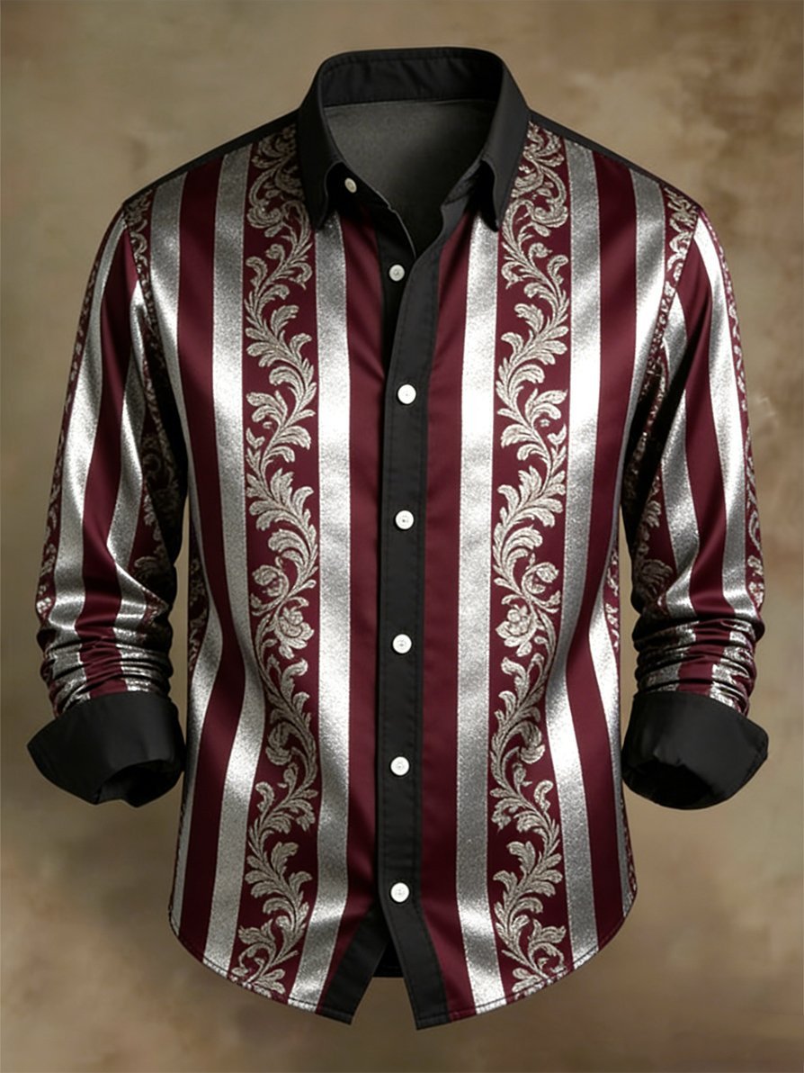 Men's Retro Business Color Block Striped Pattern Long-Sleeve Shirt
