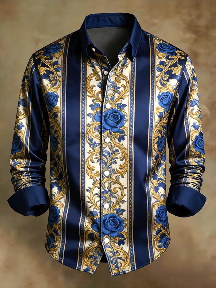 Men's Retro Business Color Block Striped Pattern Long-Sleeve Shirt