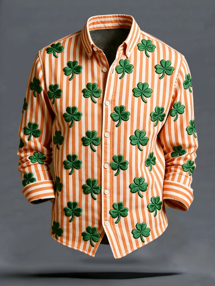 Men's Luxury St. Patrick's Day Shamrock Print Long-Sleeve Shirt