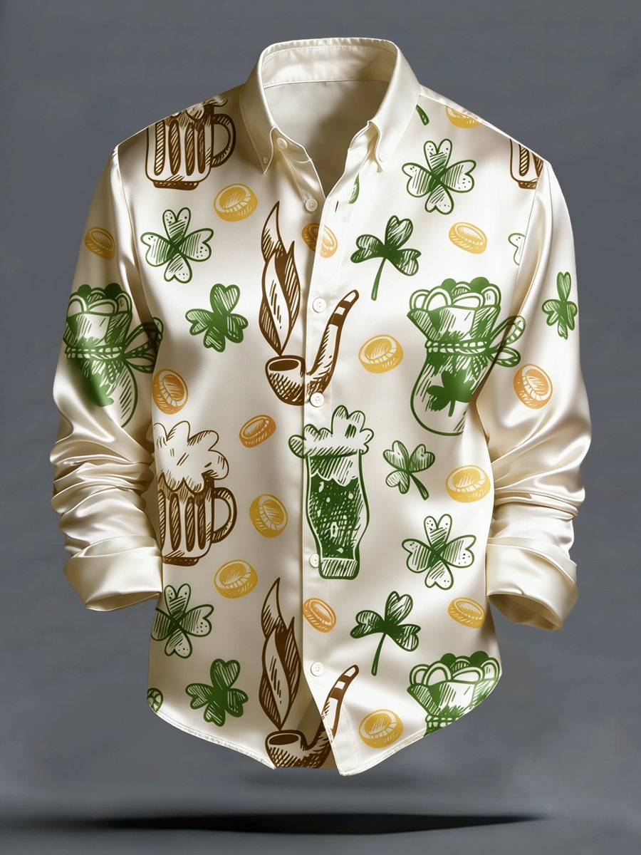 Men's Luxury St. Patrick's Day Printed Long-Sleeve Shirt