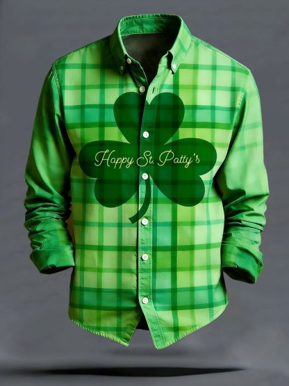 Men's Luxury Happy St. Patrick's Day Printed Long-Sleeve Shirt