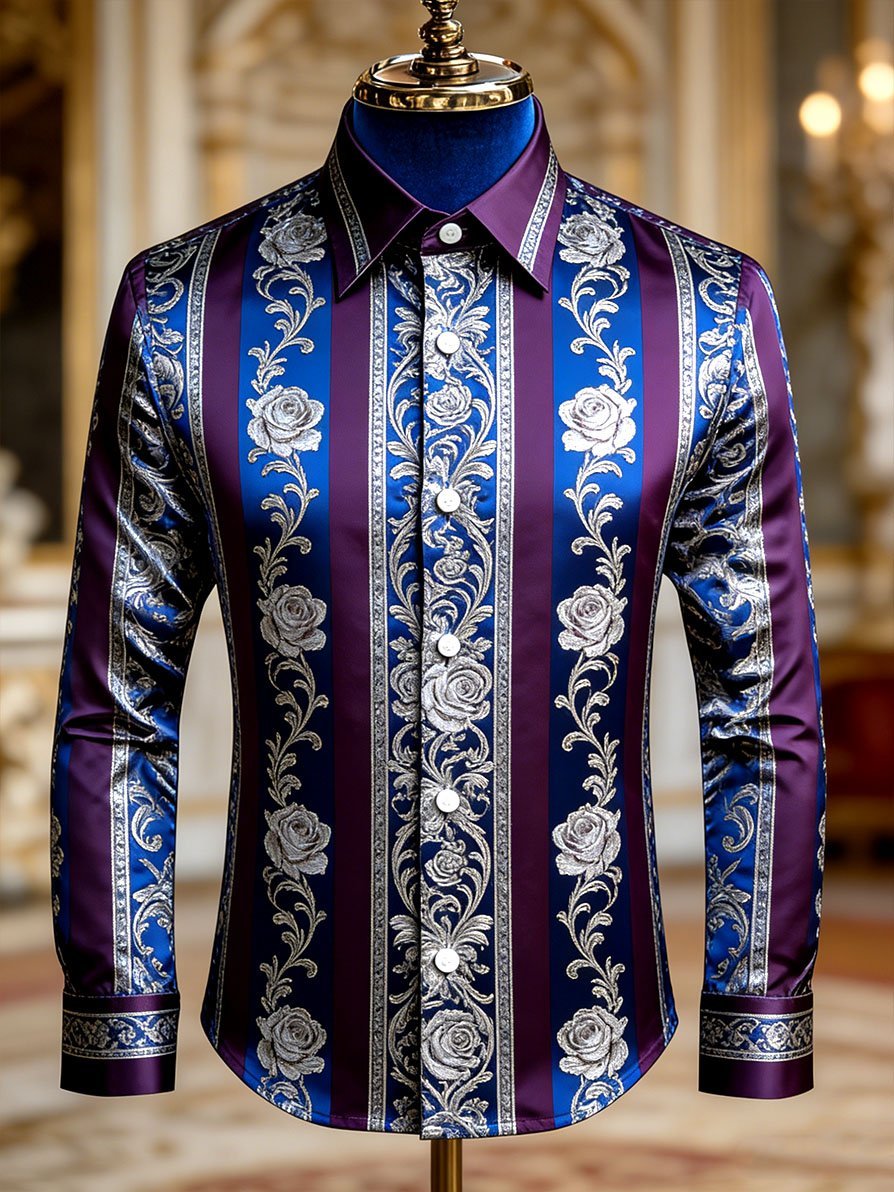 Men's Vintage Business Striped Baroque Long-Sleeved Shirt