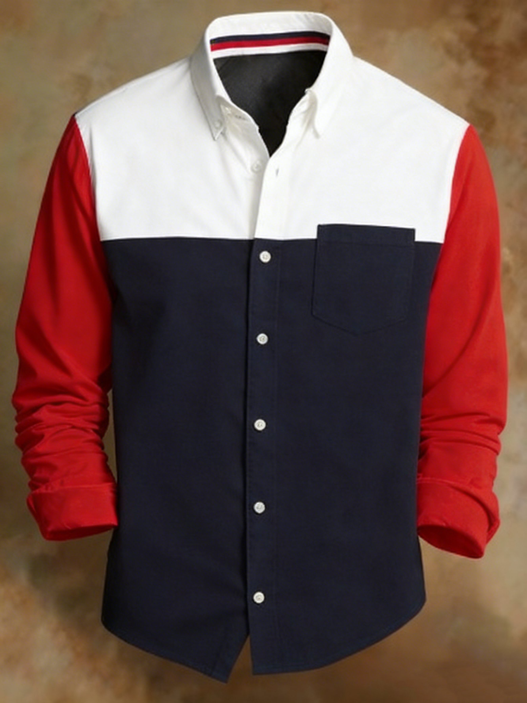 Men's Retro Colorblock Pattern Print Shirt