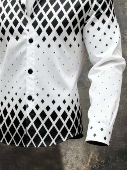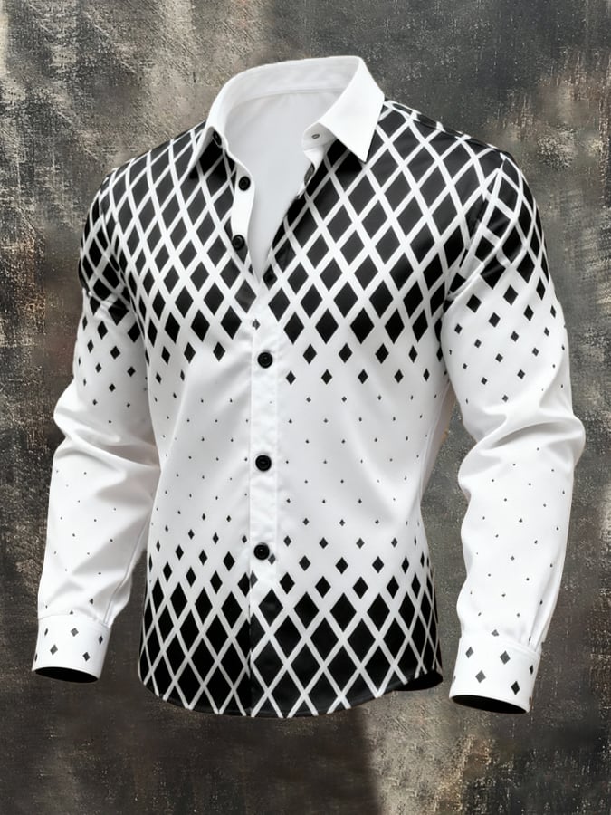 Men'S Vintage Color-Block Printed Long-Sleeved Shirt