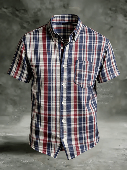 Men's Vintage Abstract Art Print Short-Sleeved Pocket Shirt