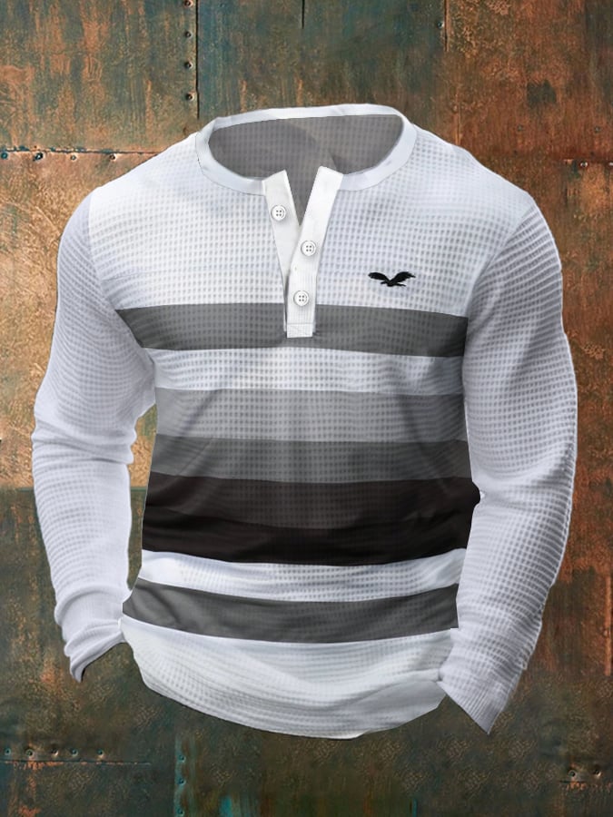 Men's Vintage Waffle Color Patch Henley Neck T-Shirt