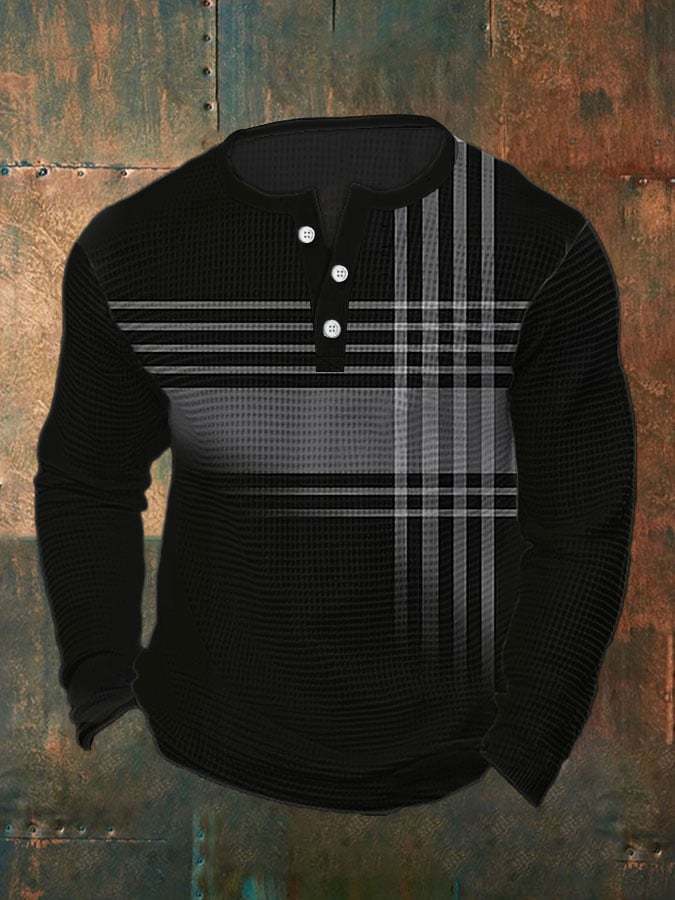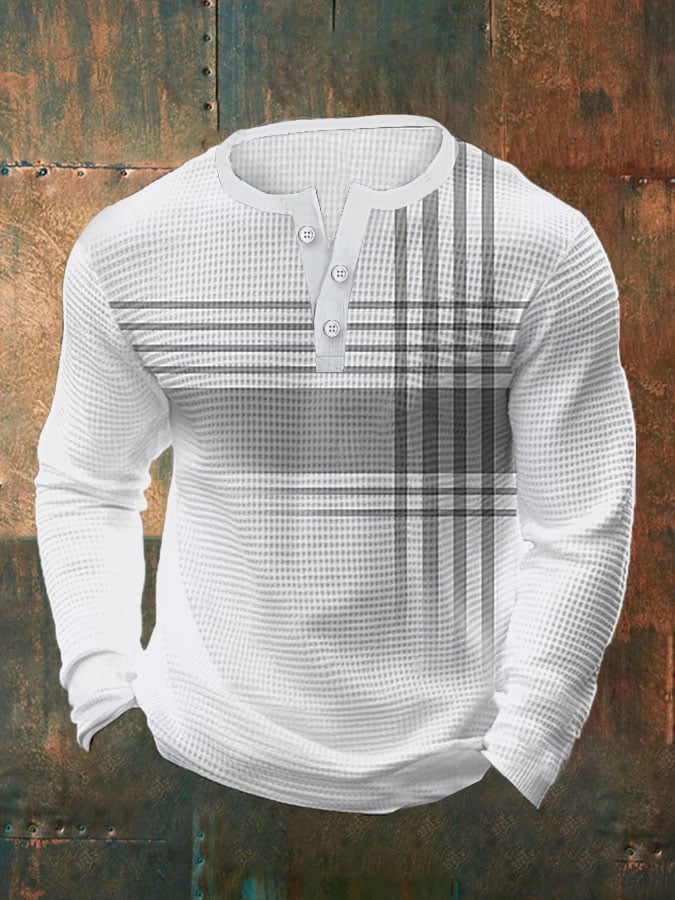 Men's Vintage Casual Henley Waffle Long Sleeve Polo Shirt