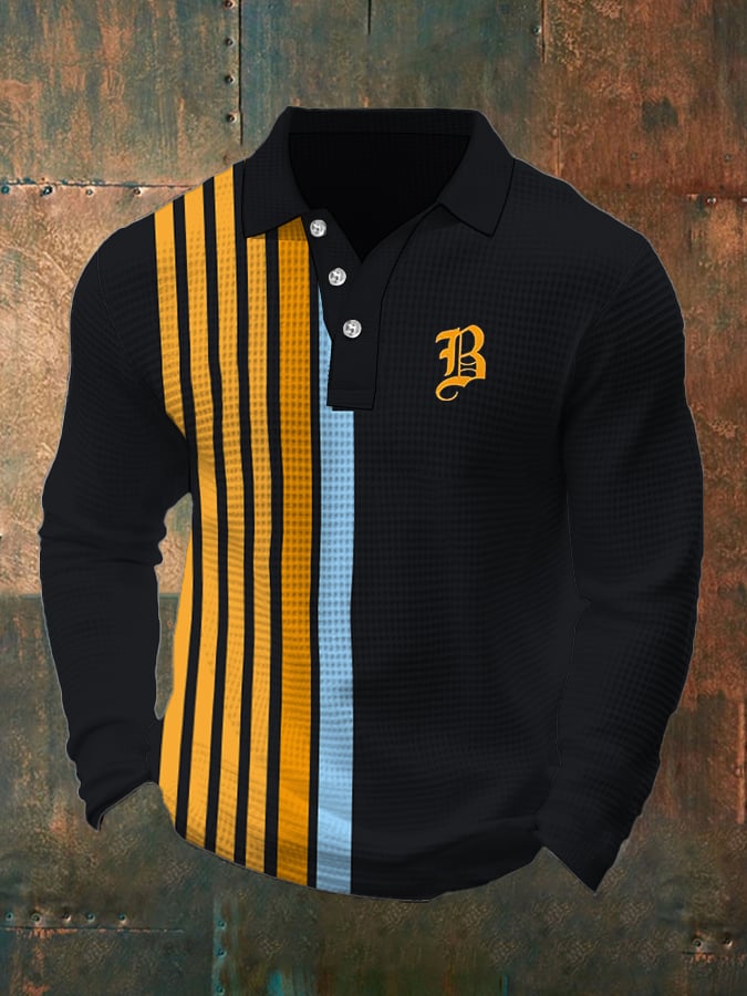 Men's Retro Waffle Color Stitching Lapel T-Shirt