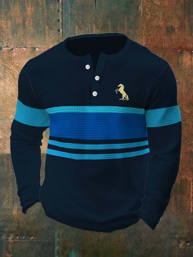 Men's Vintage Waffle Color Patch Henley Neck T-Shirt