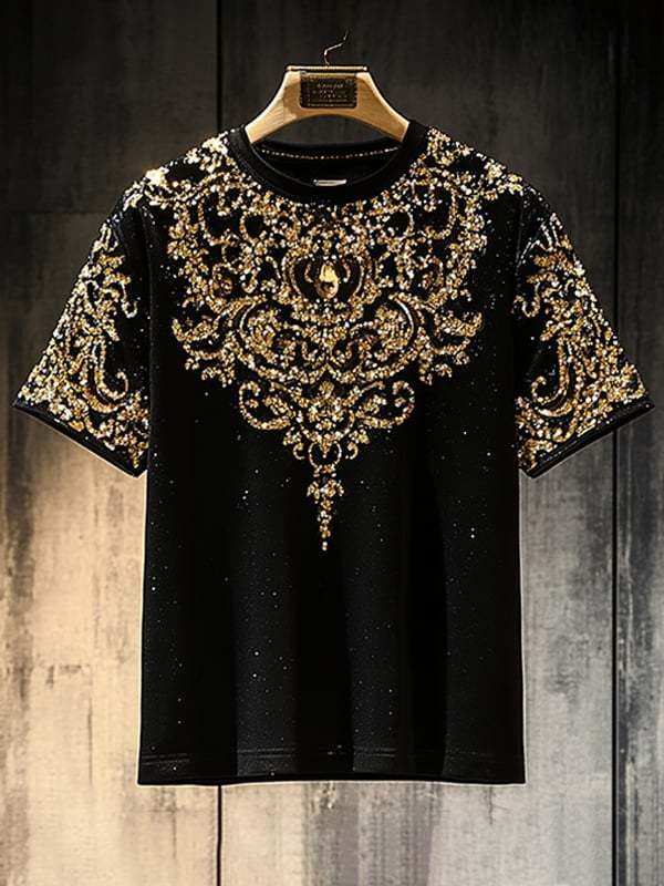Men's Business European Pattern Sequin Print Short Sleeve T-shirt