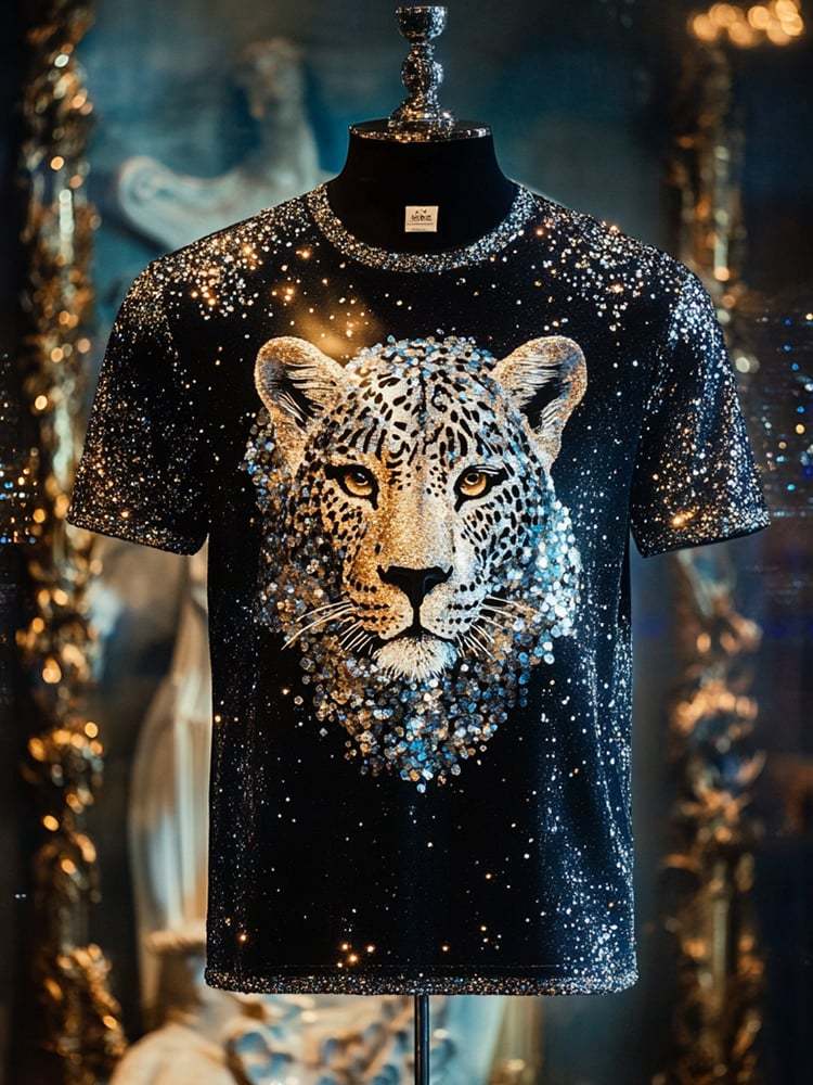 Men's Leopard Sequin Business Print Short Sleeve T-Shirt