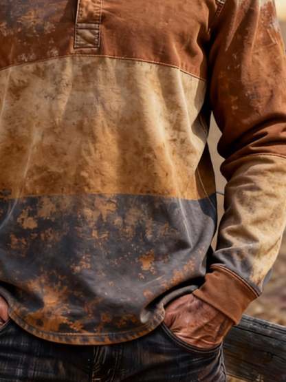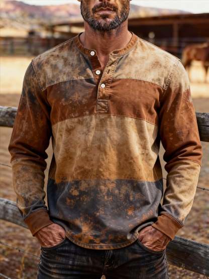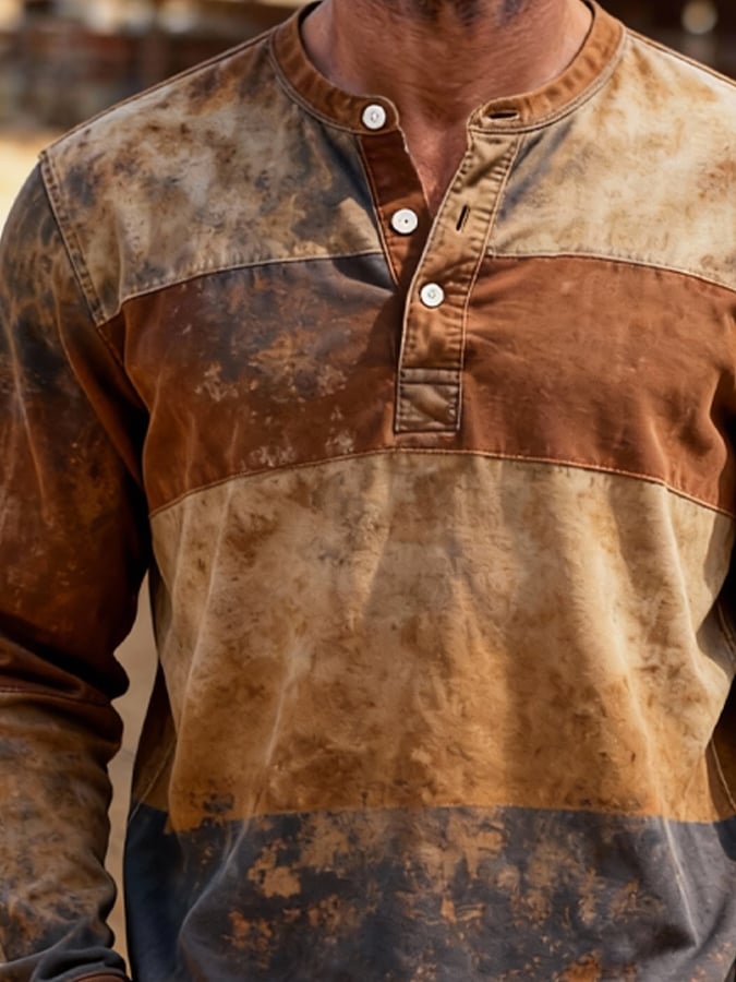 Men's Retro Color Block Long Sleeve Henley
