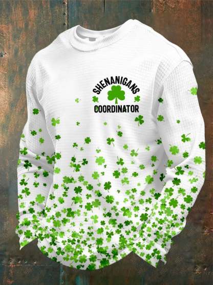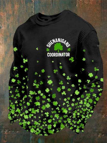 Men'S Shenanigans Coordinator St Patrick's Day Print Waffle Fabric Long Sleeve T-Shirt
