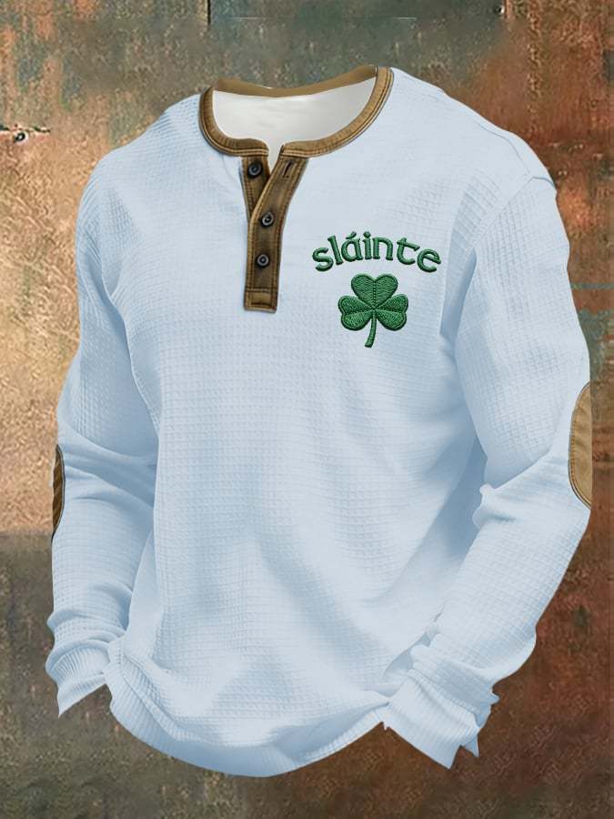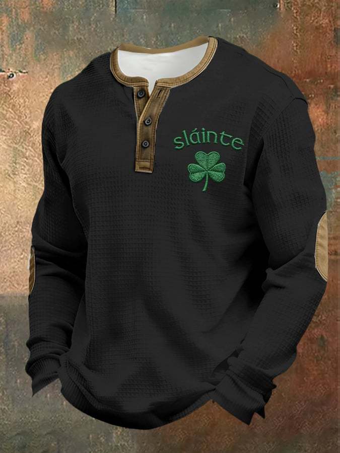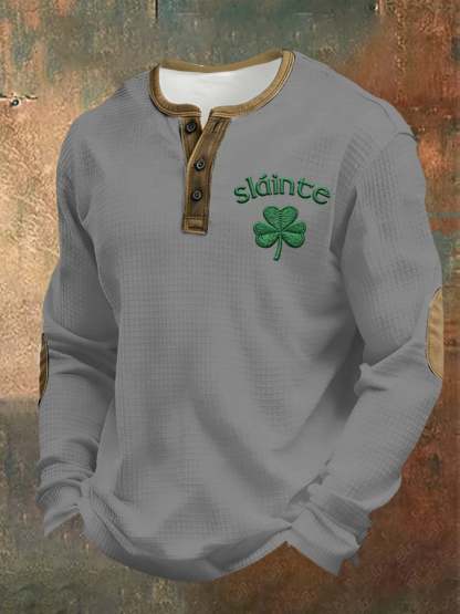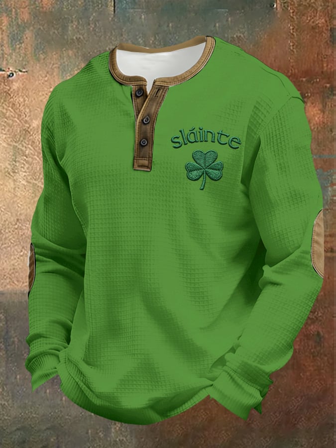 Men's casual Saint Patrick's Day clover Henley shirt