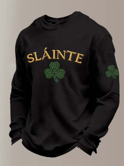Men'S St Patrick's Day Print Waffle Fabric Long Sleeve T-Shirt