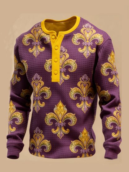 Men's New Orleans Louisiana Mardi Gras Fleur De Lis Waffle Henley shirt