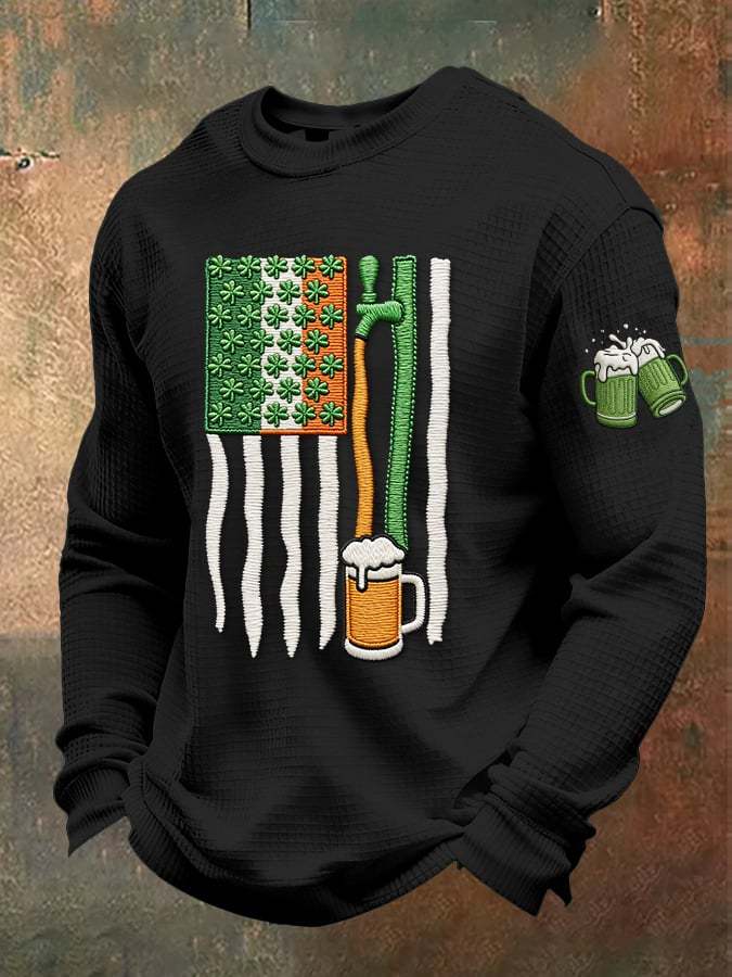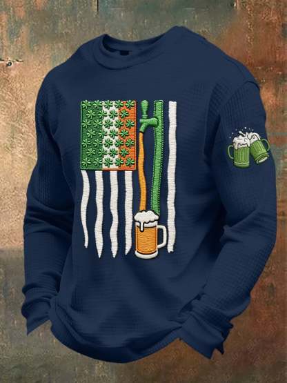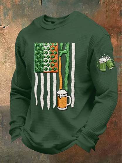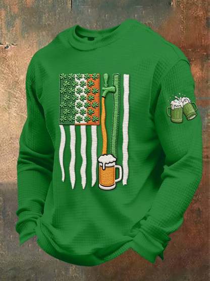 Men's casual St. Patrick's Day beer toast waffle-knit T-shirt