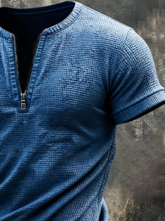Men's Retro Zipper Waffle T-Shirt