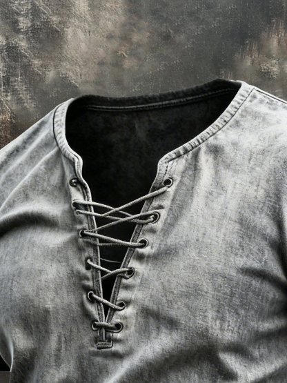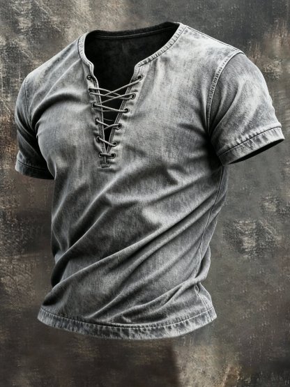 Men's Vintage Washed Tie-Up Short-Sleeved T-Shirt