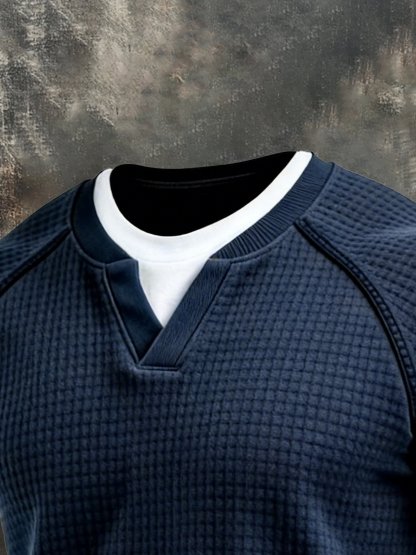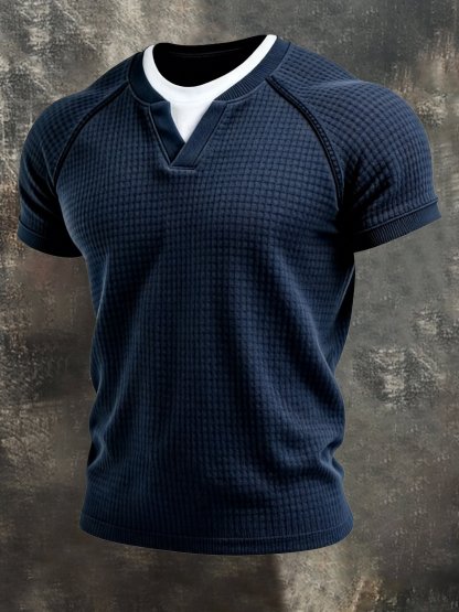 Men's Retro Waffle Fake Two-Piece Short Sleeve T-Shirt