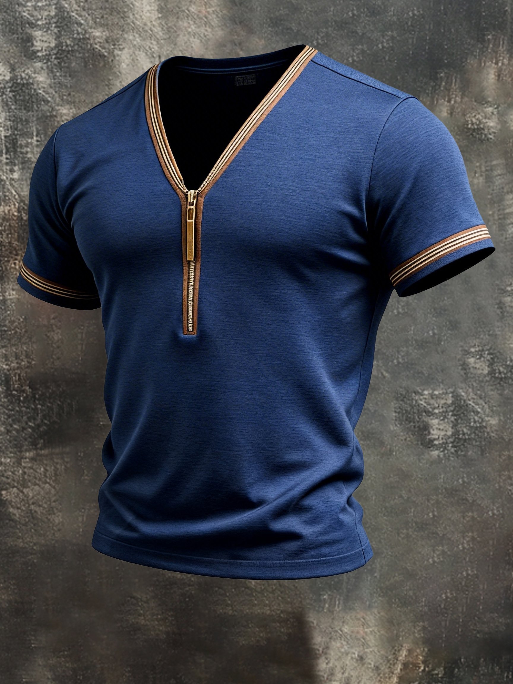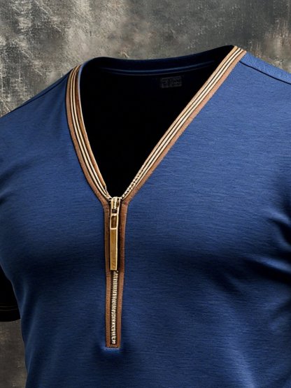 Men's Retro Contrast Color Splicing V-Neck Short Sleeve T-Shirt