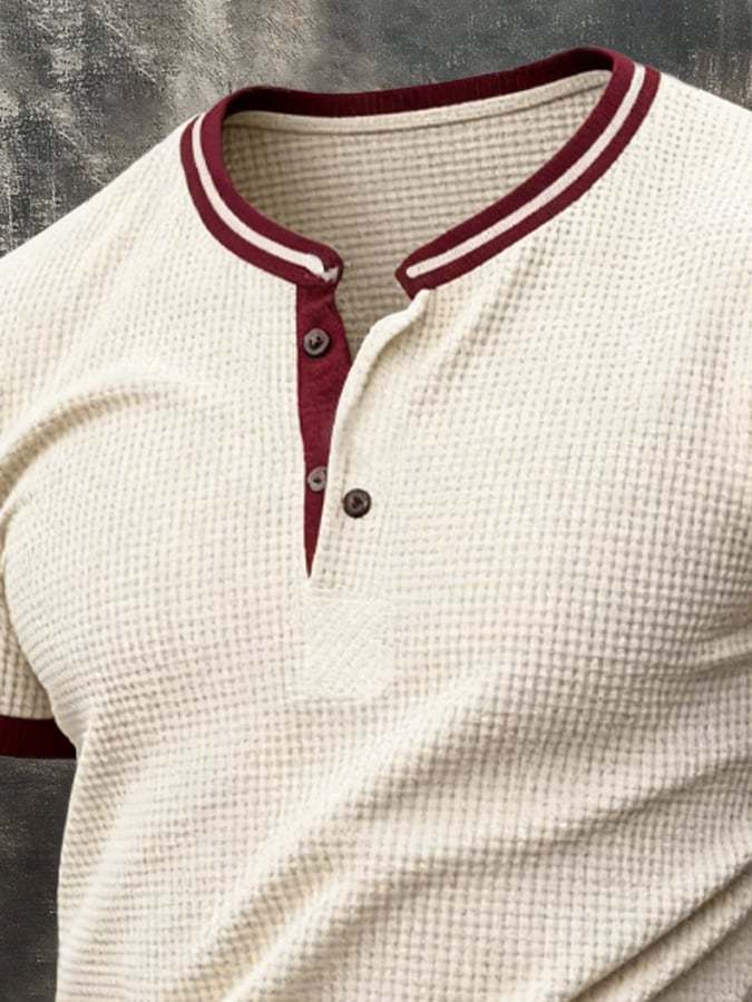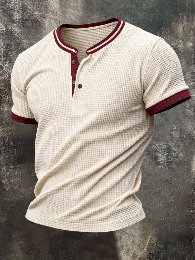 Men's Retro Patchwork Waffle T-shirt